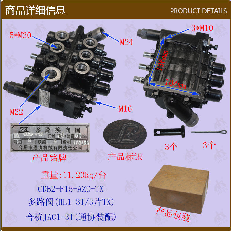 วาล์ว JAC1-3T ไฮดรอลิก3ชิ้น HL1-3T วาล์วไฮดรอลิก3ชิ้นเหอเฝย์