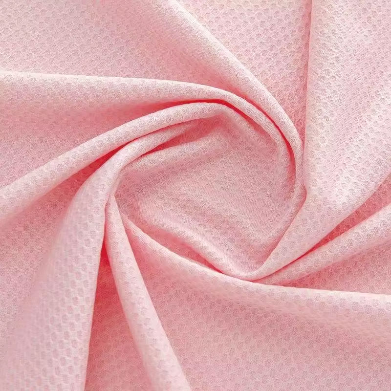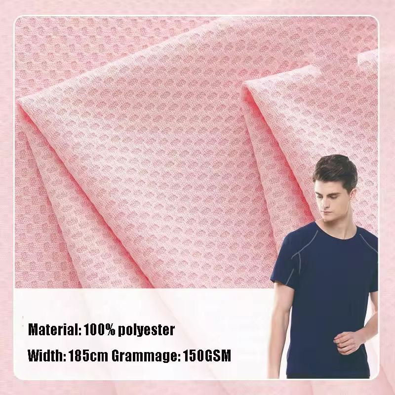 ผ้าตาข่ายแจ็คการ์ดยืดได้ 4 ทิศทาง สำหรับชุดกีฬา น้ำหนัก 150 กรัม ผลิตจากโพลีเอสเตอร์ 100% ระบายอากาศได้ดี แห้งเร็ว แบบรังผึ้ง 4 ส่วน