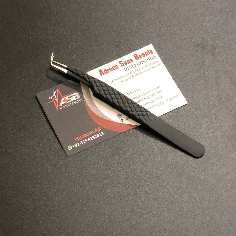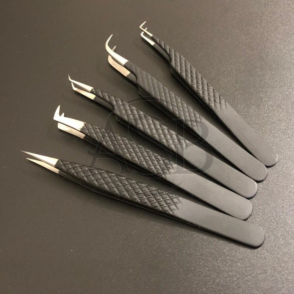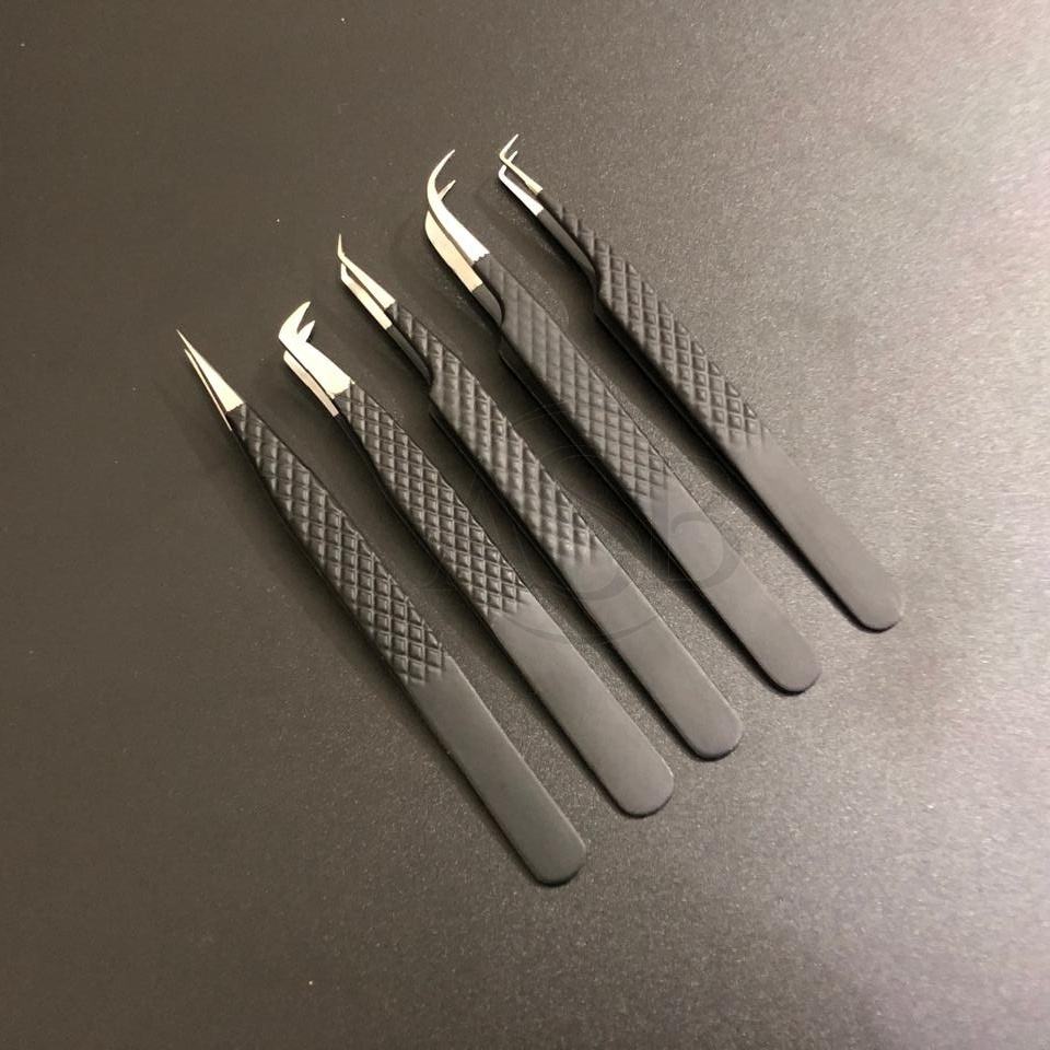 แหนบถอนขนตาสแตนเลสสีดำด้านพร้อมปลายแหลมอุปกรณ์ต่อขนตาแบบคงทนแบบญี่ปุ่น