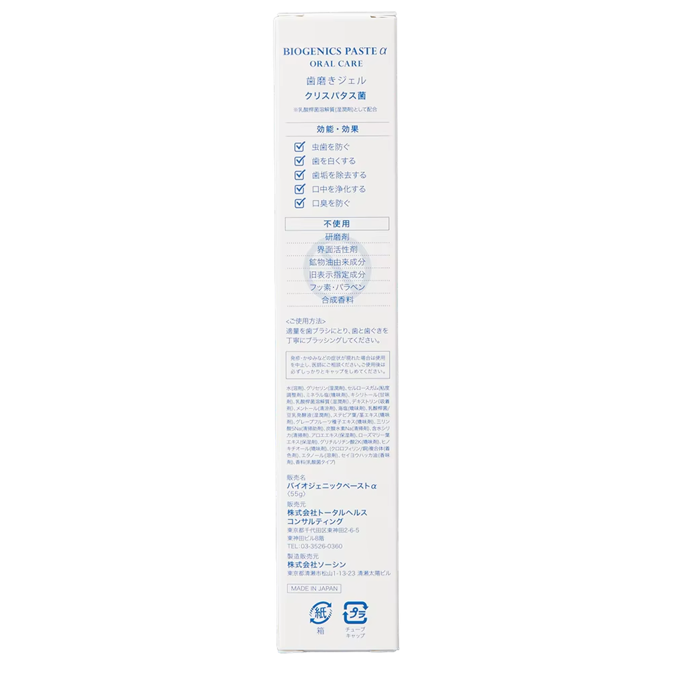 ยาสีฟันญี่ปุ่นขายส่ง สูตรพรีเมียมจากส่วนผสมธรรมชาติ ไบโอเจนิกส์ พีสต์ ปราศจากฟลูออไรด์