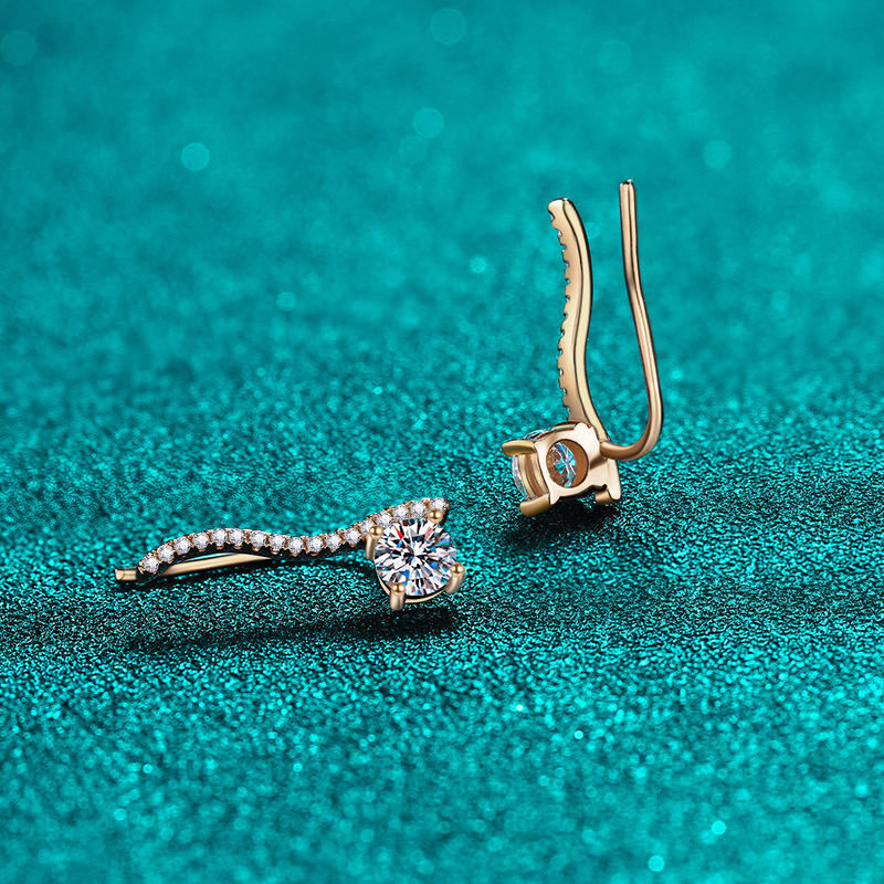 ต่างหูเพชรโมอิสซาไนต์สีแชมเปญโกลด์ขายส่ง รับรองโดย GRA เงินแท้ 925 ชุบโรเดียม แฟชั่นสำหรับผู้หญิง