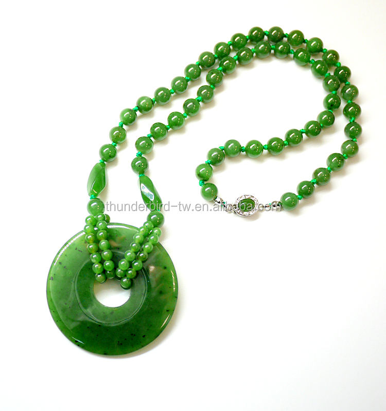ขายส่งเครื่องประดับเหรียญโดนัทธรรมชาติแท้สีเขียวหยกลูกปัดสร้อยคอ