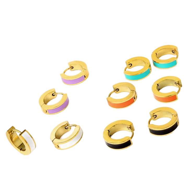 ต่างหูห่วงสแตนเลสเคลือบสีสันสดใส ชุบทอง 18K ไม่ลอก ไม่ดำ สำหรับผู้หญิง ขายส่ง