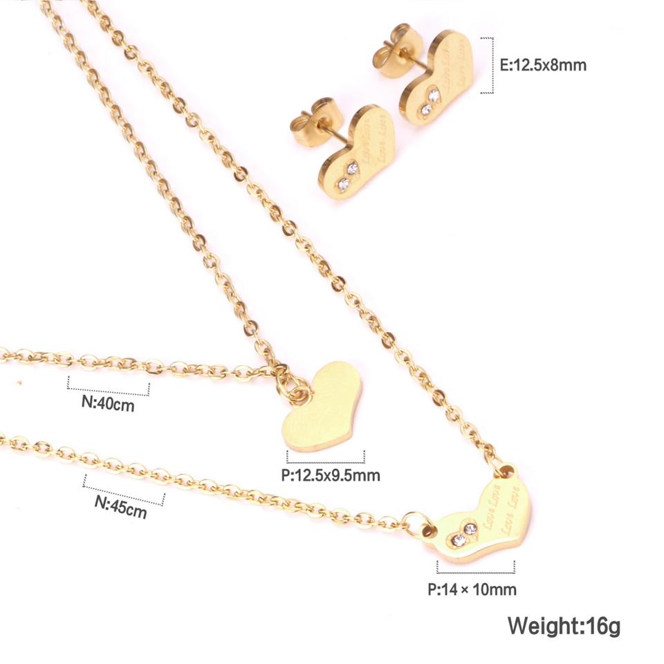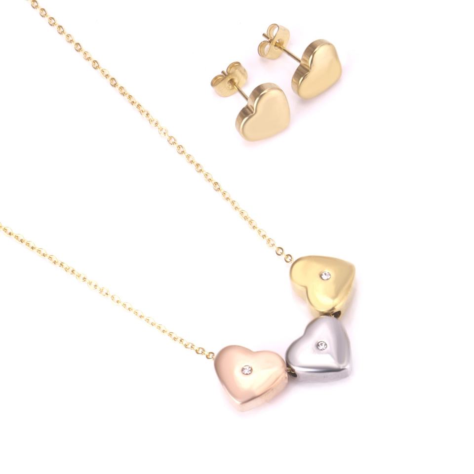 ผู้ผลิตเครื่องประดับขายส่งจากจีน ชุดเครื่องประดับสแตนเลสชุบทอง 18K รูปหัวใจสำหรับผู้หญิง