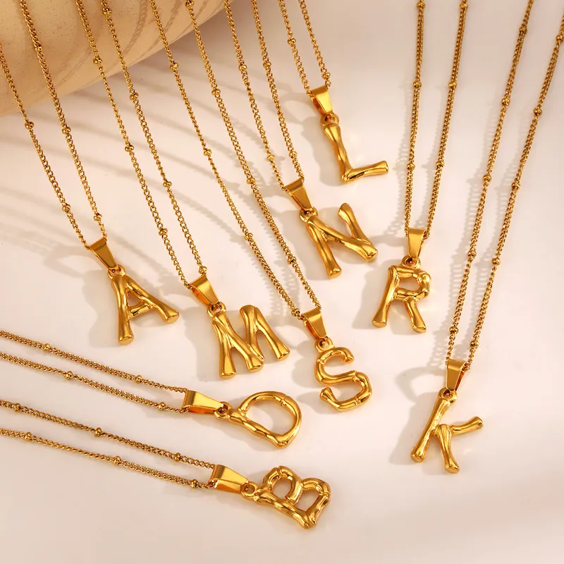 สร้อยคอพร้อมจี้รูปตัวอักษรสแตนเลส304สำหรับผู้หญิงโซ่ร้อยเชือกดีไซน์แบบเรียบง่ายทำจากทองคำ18K