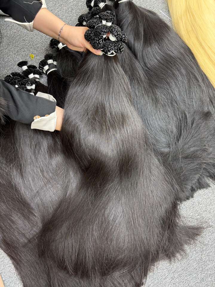 K ปลายผมมนุษย์ผมธรรมชาติเคราตินแท้100% เต็มนิ้วมัดผมตรงยืดและไม่ผ่านกระบวนการ