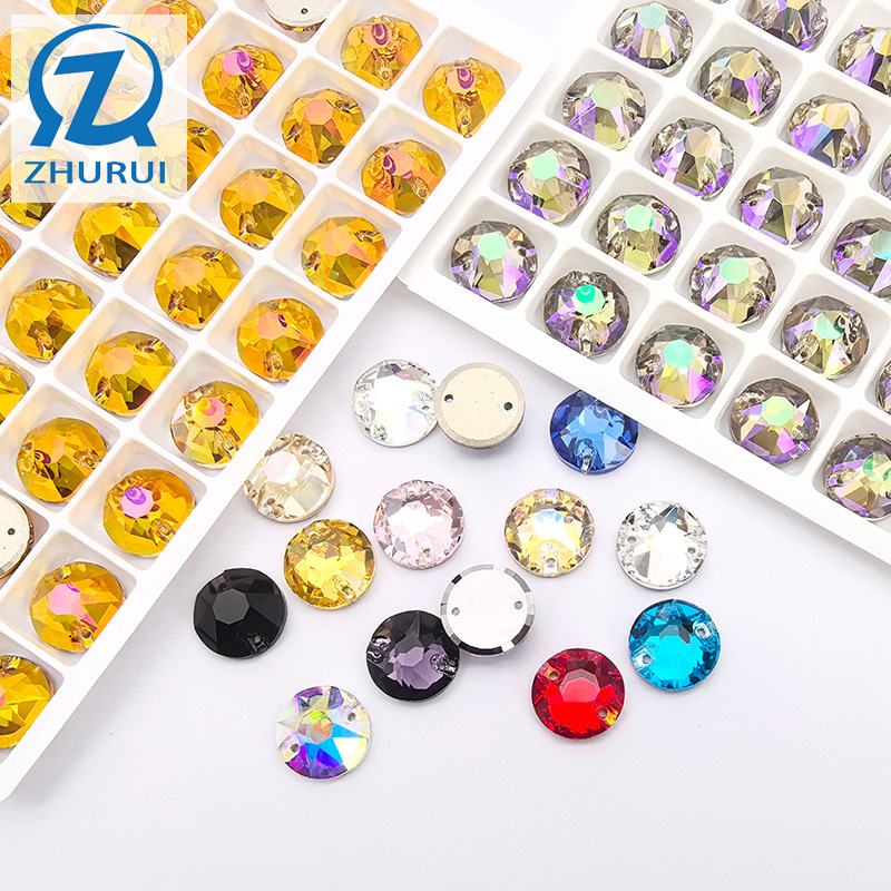 หัวเข็มขัดประดับเพชรแบบเย็บมือทรงกลม ฐานแบน รูคู่ สำหรับงานรองเท้า ขายส่ง