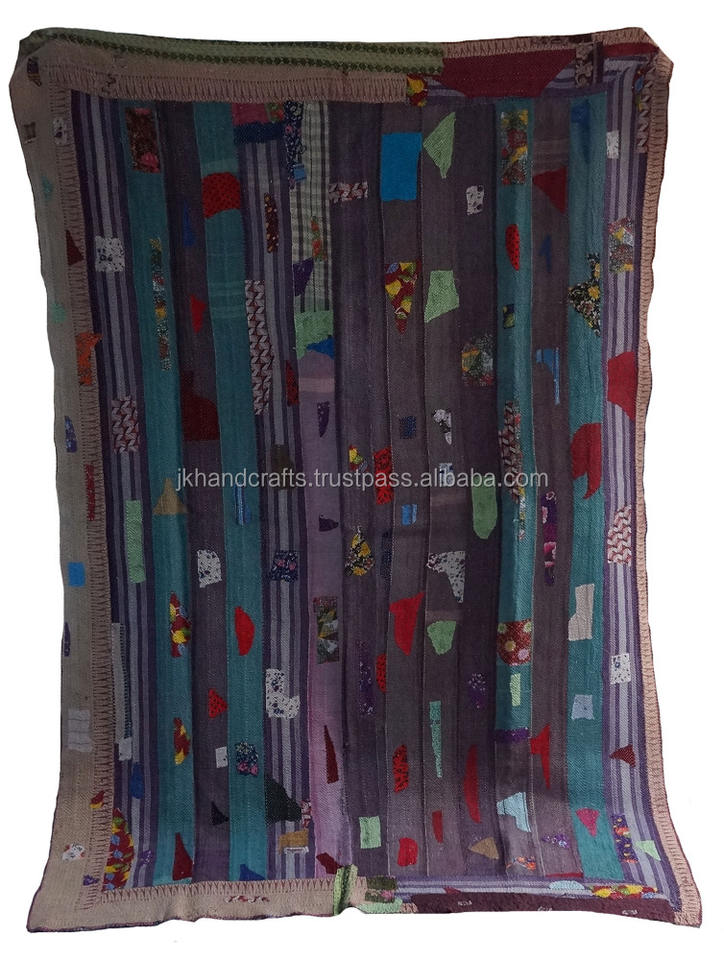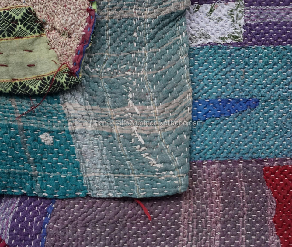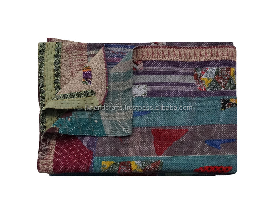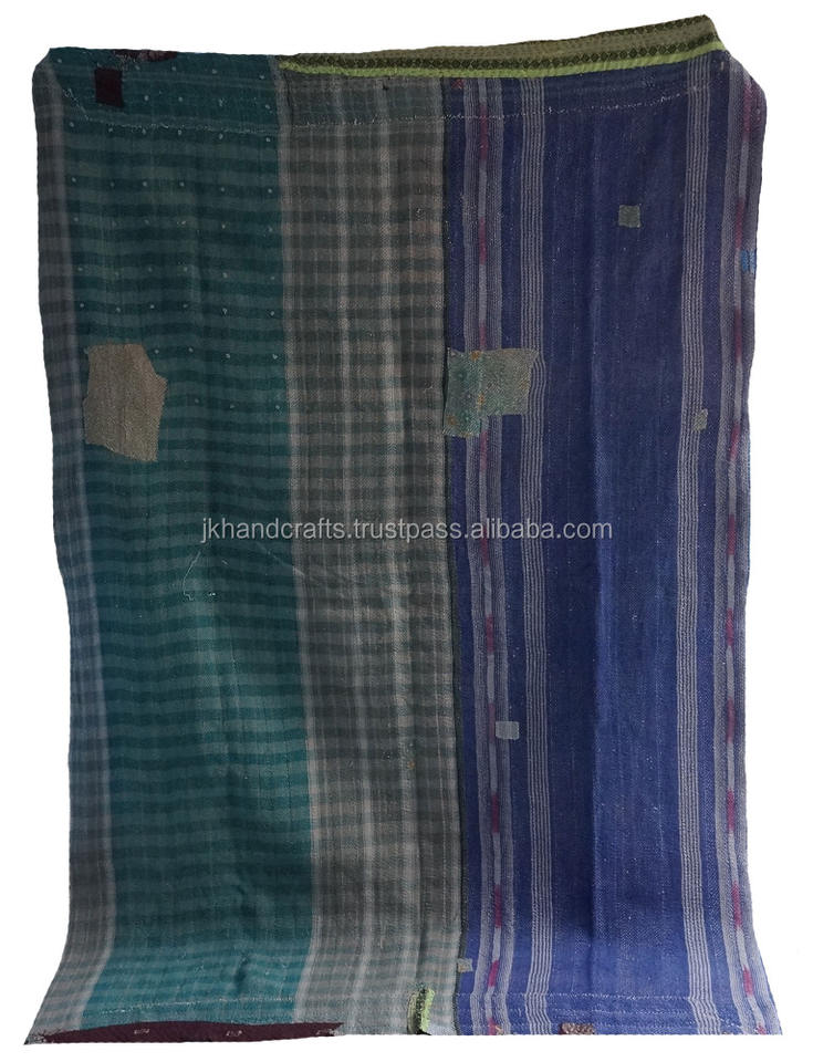 ผ้าห่ม Kantha ผ้าฝ้ายสองขนาดลายพื้นเมืองส่าหรีผ้าห่ม Kantha