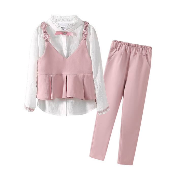 เสื้อผ้าเด็กขายส่ง ชุดเด็กผู้หญิงสไตล์เกาหลี เสื้อแขนยาวและกางเกงขายาว ชุด 3 ชิ้น จากการช้อปปิ้งออนไลน์ฮ่องกง