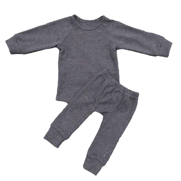 ชุดเสื้อผ้าเด็กแบบวาฟเฟิลคอตตอนขายส่ง ชุดเข้าชุดสำหรับเด็ก 2 ชิ้น