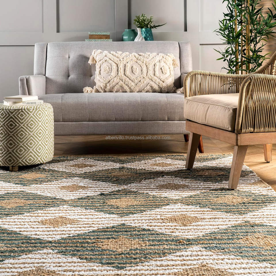 พรมผ้าคอตตอนลายสก็อต4x6พรมสไตล์โมรอคโคพรมออกแบบได้ตามต้องการสำหรับห้องนั่งเล่นในบ้านพรมปูพื้น