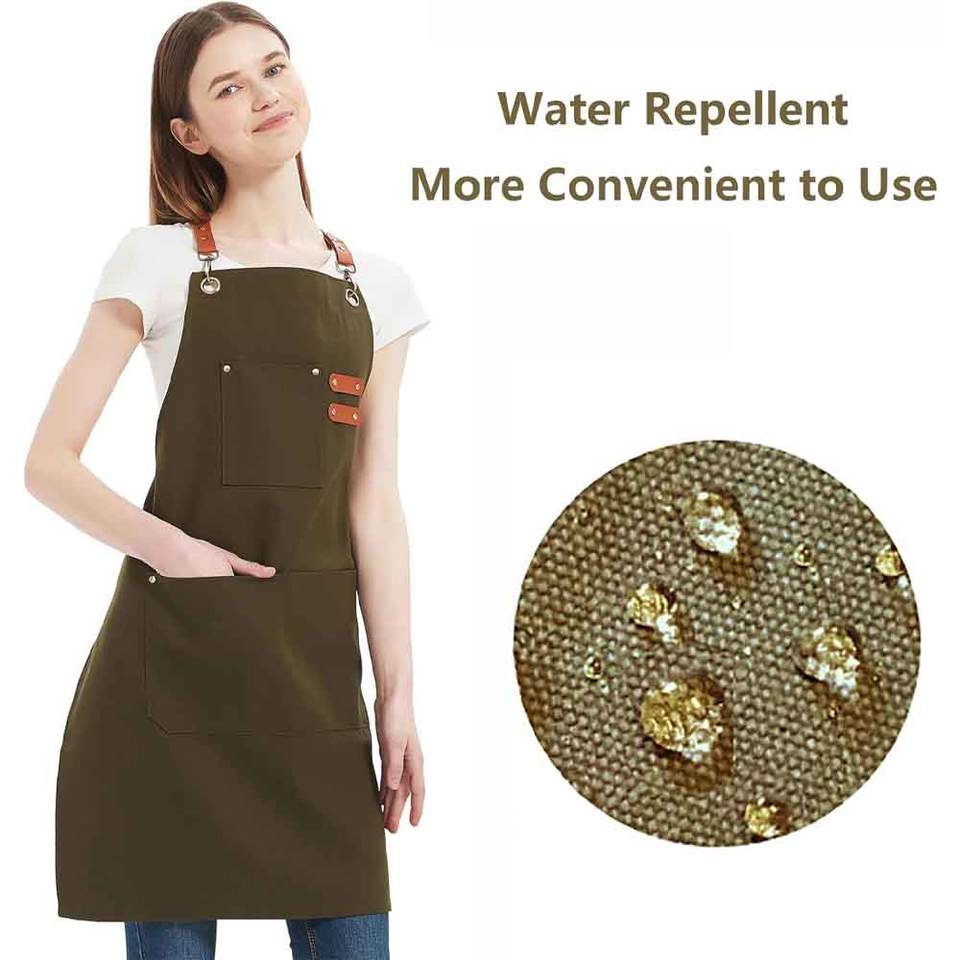 ผ้ากันเปื้อนครัวแบบขายส่ง ผ้าแคนวาส สกรีนโลโก้ได้ ผ้าฝ้ายกันน้ำ ผ้ากันเปื้อนเชฟสำหรับทำอาหาร ผ้ากันเปื้อนแบบปรับได้ มีกระเป๋า