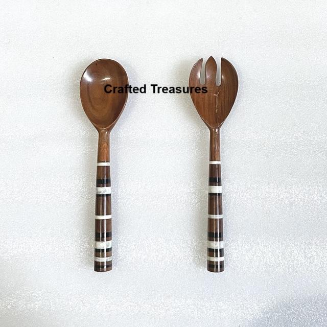 ชุดมีดเสิร์ฟสลัดไม้ตกแต่งห้องครัวพร้อมด้ามหินขัดช้อนผสมสลัดผลไม้พร้อมส้อม