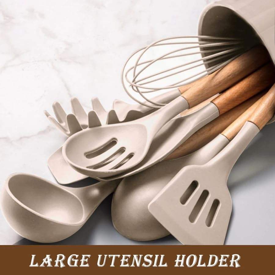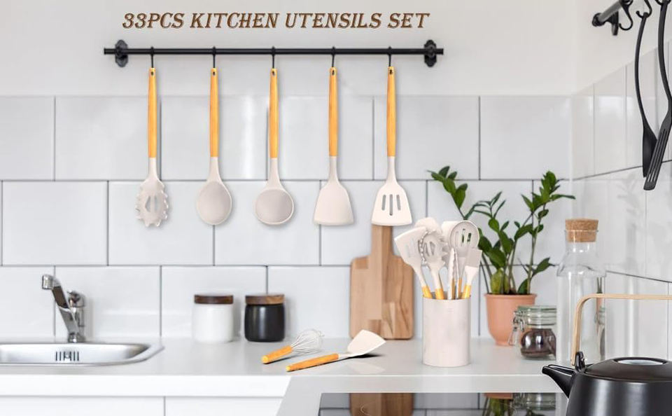 ชุดอุปกรณ์ครัวซิลิโคนสำหรับทำอาหาร 33 ชิ้น พร้อมด้ามไม้ ขายส่ง