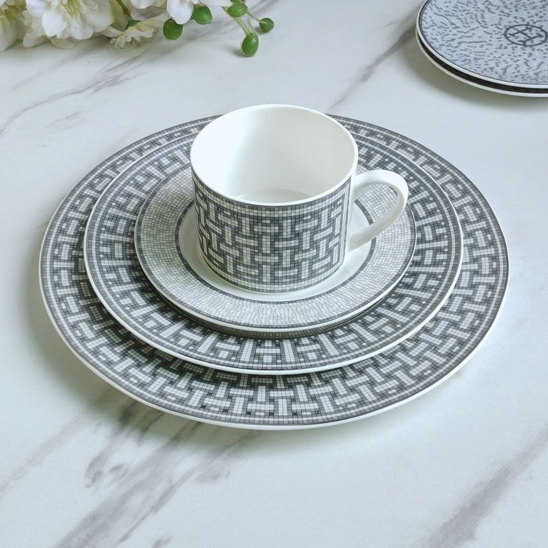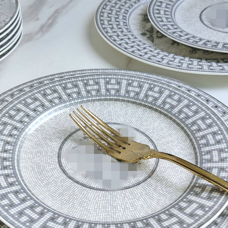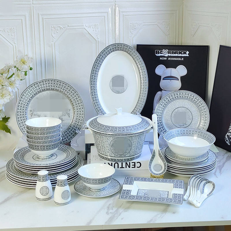 ชุดเครื่องใช้บนโต๊ะอาหารสุดหรูชุดรับประทานอาหารลายโมเสกเซรามิกลายราชวงศ์ตะวันตกของจีน58ชิ้นเครื่องใช้ในครัว