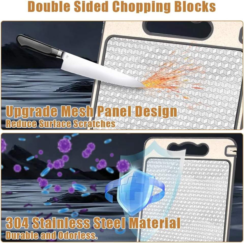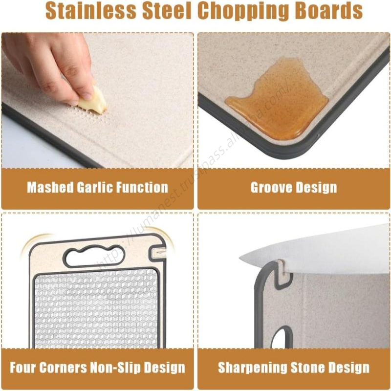 เขียงสแตนเลสสองด้านสำหรับครัวขายส่ง พร้อมที่ลับมีด สำหรับหั่นอาหาร เนื้อสัตว์ และผัก