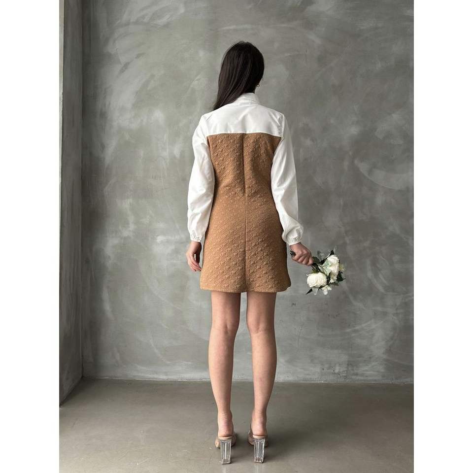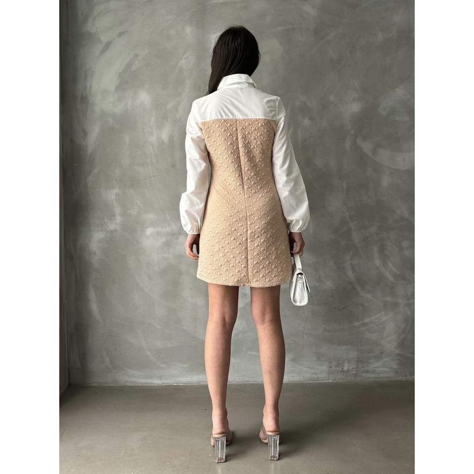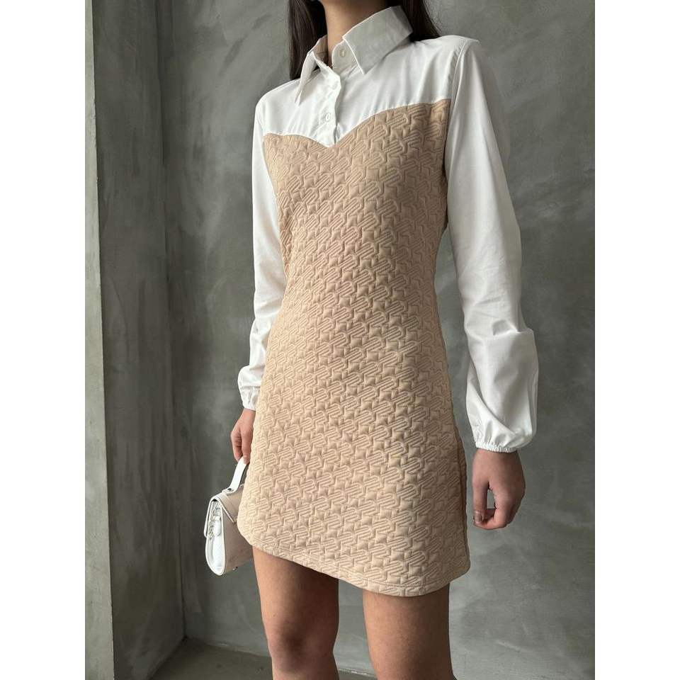 เดรสยาวระดับเข่าแบบขายส่ง แขนผ้าป๊อปลิน พร้อมดีเทลที่อกเพื่อชุดที่มีสไตล์