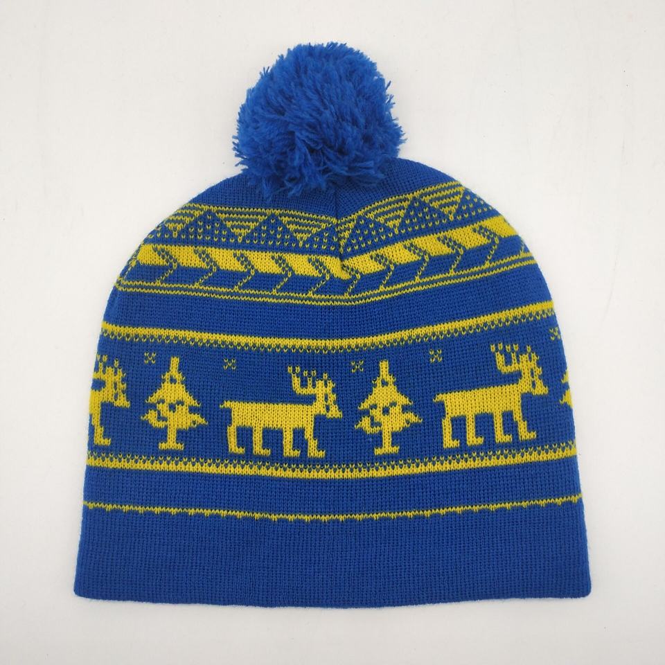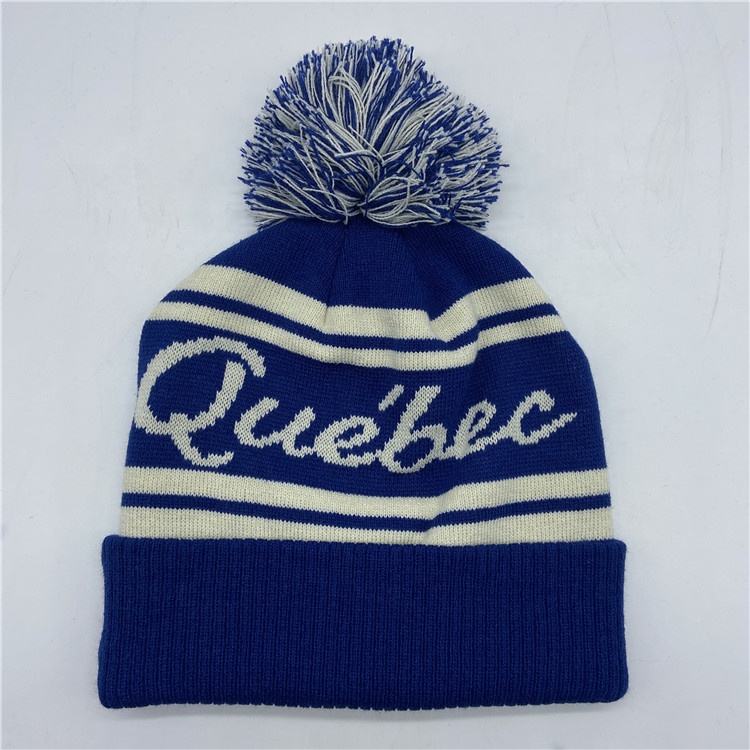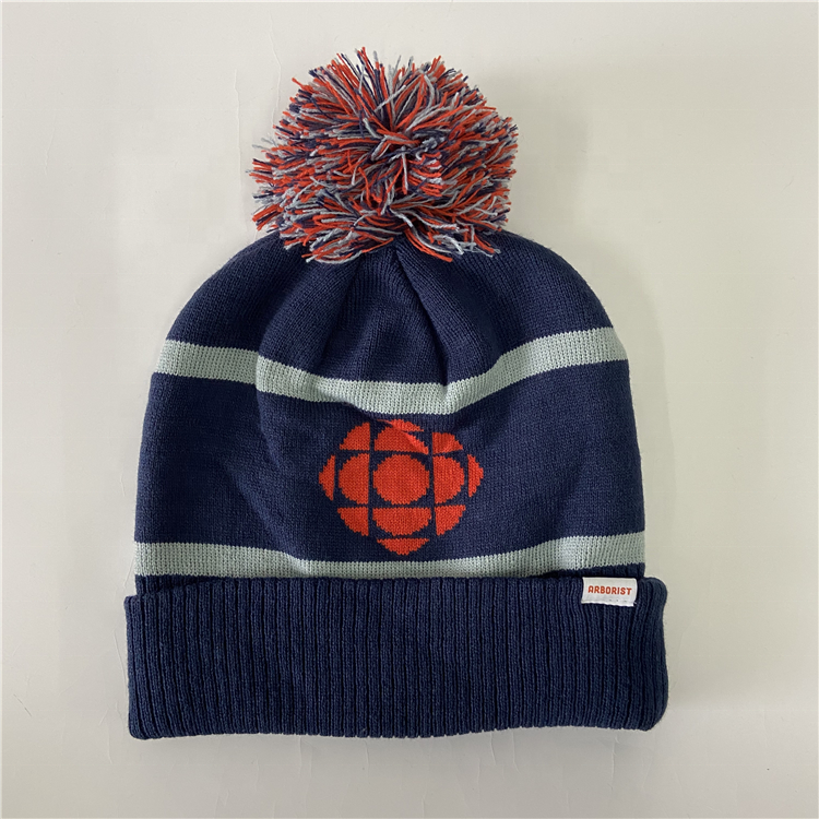 Wholesale Knitted Beanie Winter Adult Headwear Hat Custom Logo Bobble Hat With Pom Pom Ball Multi-color