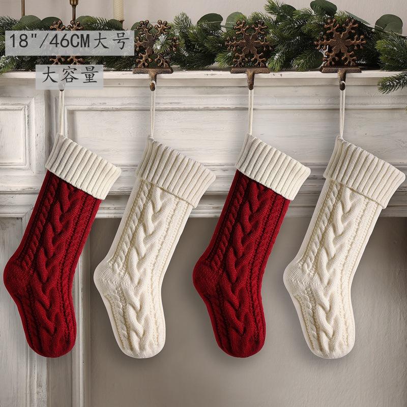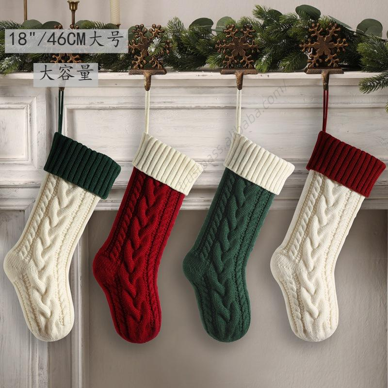ถุงเท้าคริสต์มาสถักแบบขายส่ง ถุงของขวัญตกแต่ง ขนาด 18 นิ้ว สำหรับตกแต่งเตาผิงสำหรับครอบครัว