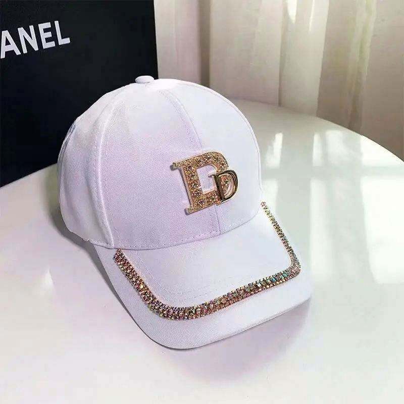 หมวกเบสบอลแฟชั่นเกาหลีขายส่ง สีพื้น แต่งตัวอักษรประดับเพชร ปีกโค้ง สไตล์ลำลอง