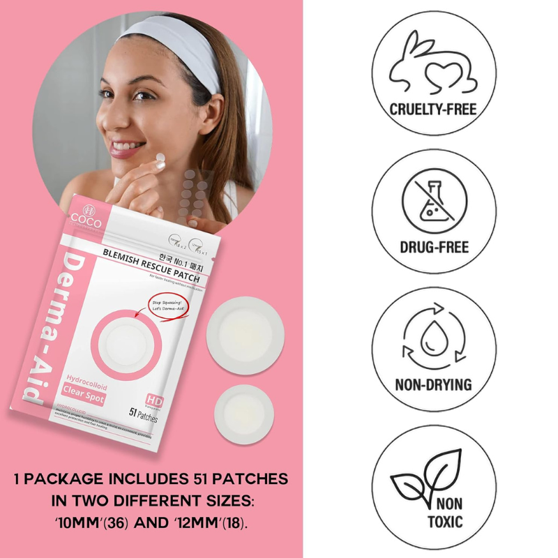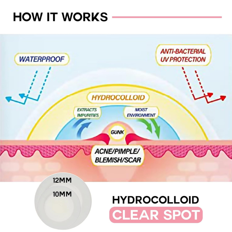แผ่นแปะดูดซับสิวไฮโดรคอลลอยด์ ผลิตในเกาหลี ขนาด 10 มม. และ 12 มม. ผสมกรดซาลิไซลิกออร์แกนิก สำหรับรักษาสิวบนใบหน้า ขายส่ง