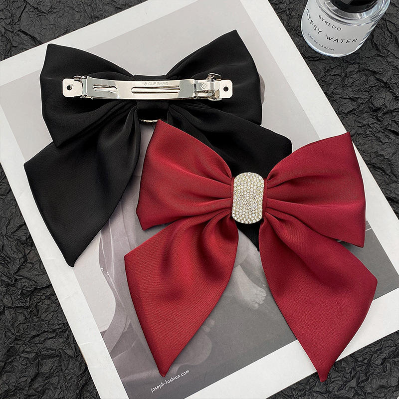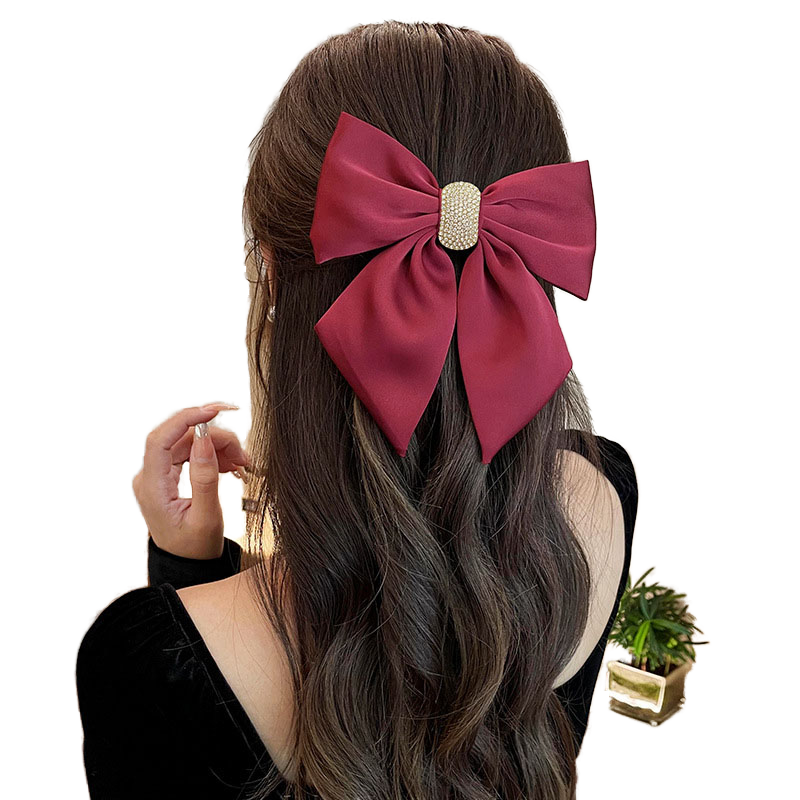 กิ๊บติดผมสไตล์เกาหลีแบบขายส่ง สีแดง ผ้าซาติน ประดับโบว์คริสตัล สำหรับผู้หญิง งานแต่งงาน งานเลี้ยง หรูหรา