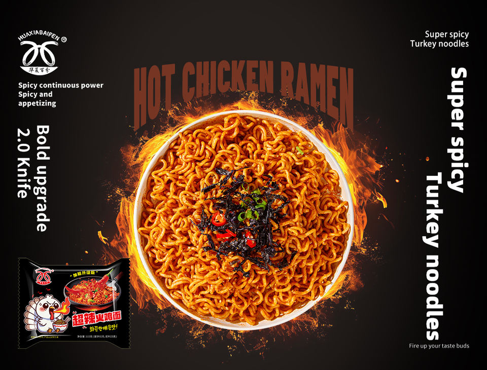 บะหมี่กึ่งสำเร็จรูปแบบทอด รสไก่งวงเผ็ดจัด 5 ชิ้น ชุดขายส่ง รุ่นเกาหลี ผลิตด้วยมือ ได้รับการรับรองฮาลาล ผลิตในจีน
