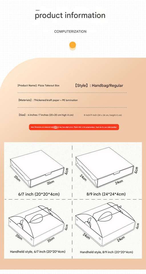 กล่องกระดาษใส่พิซซ่า ซูชิ แซนวิช แฮมเบอร์เกอร์ พาย อาหารจานด่วน อาหารกลางวัน คุณภาพดี ขนาด 6 นิ้ว 8 นิ้ว สำหรับขายส่ง