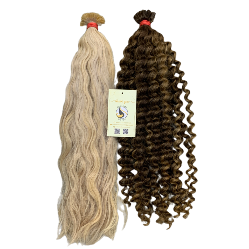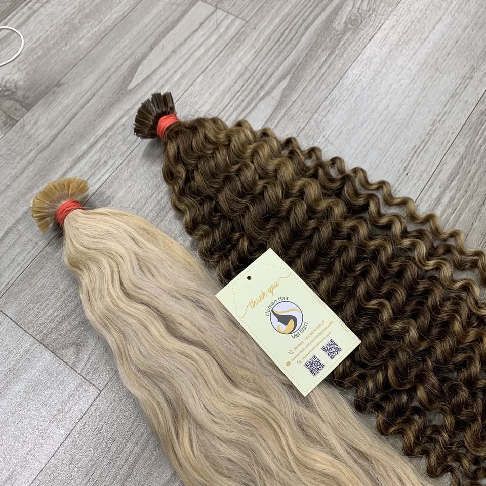 Ktip ผมต่อปลายแบนเคราตินต่อผมแบบผสมสีหยิกทรงตรงลึกแบบเวียดนาม