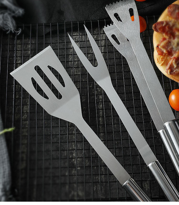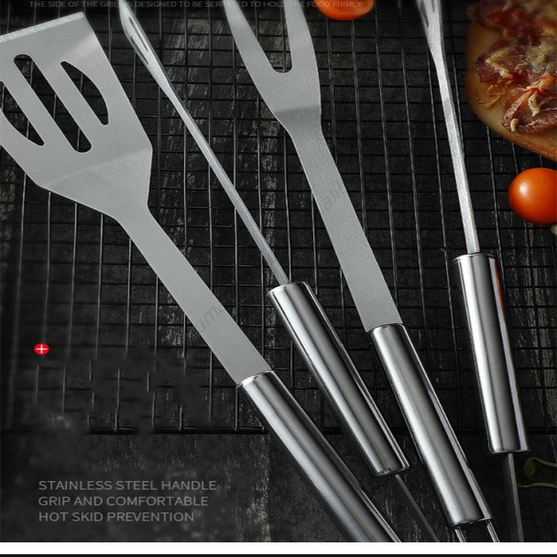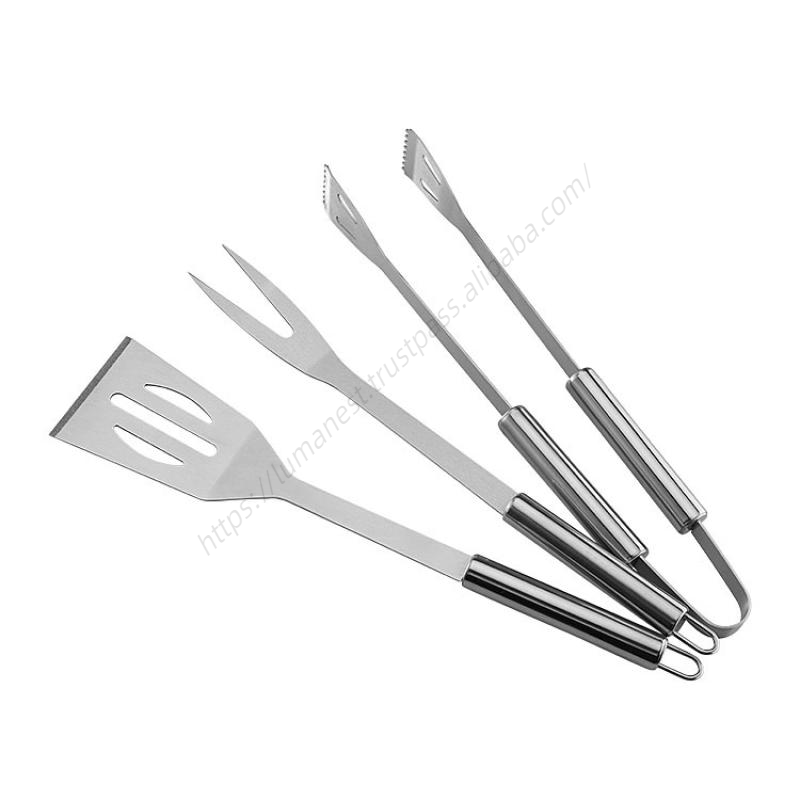 ชุดอุปกรณ์บาร์บีคิวสแตนเลส LMK009 สำหรับกิจกรรมกลางแจ้ง 3 ชิ้น อุปกรณ์ทำอาหารปิ้งย่าง