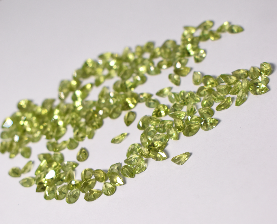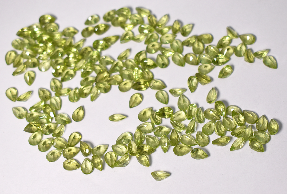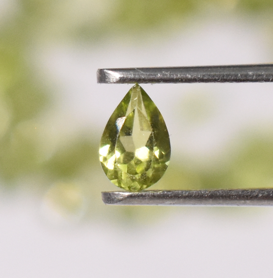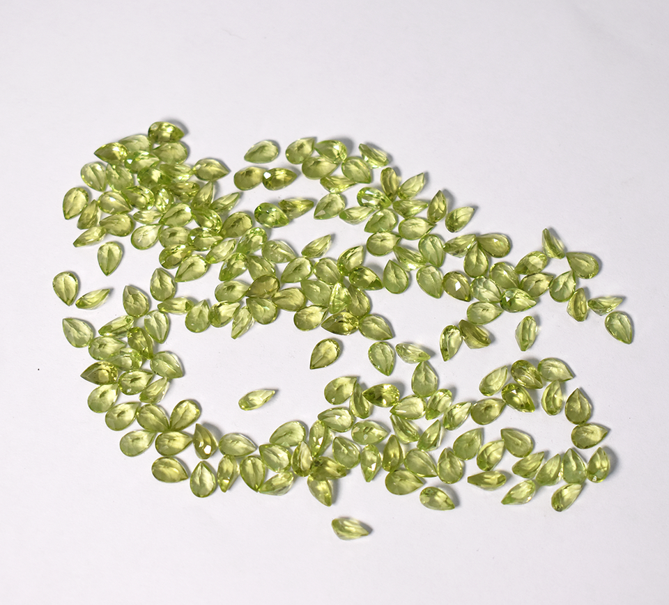 พลอยเพอริดอทสีเขียวธรรมชาติรูปร่างลูกแพร์ทำมือขนาด6x4มม.