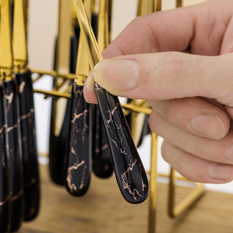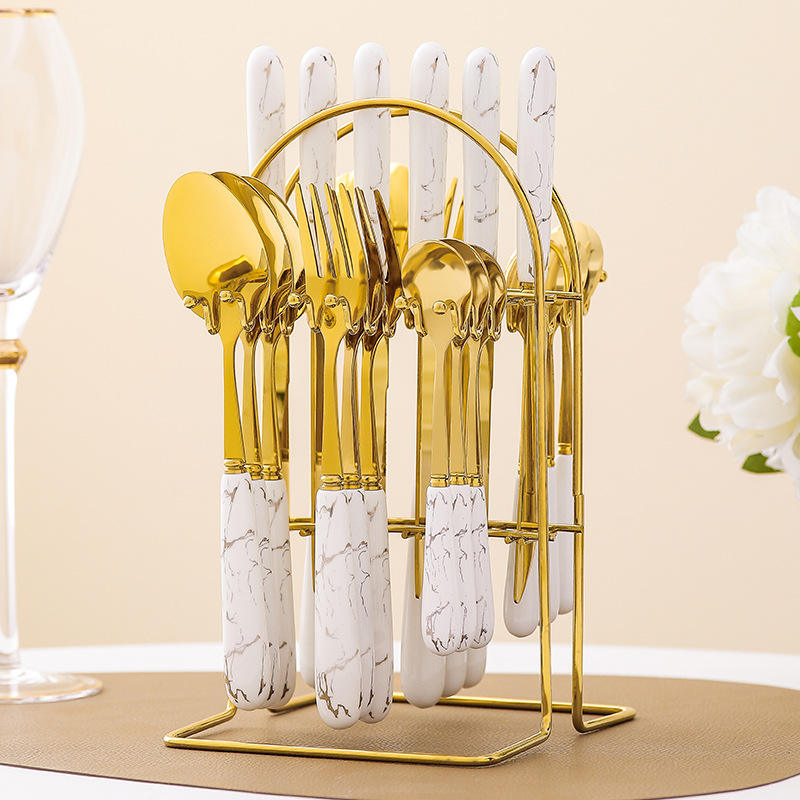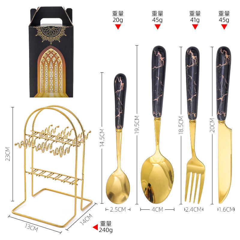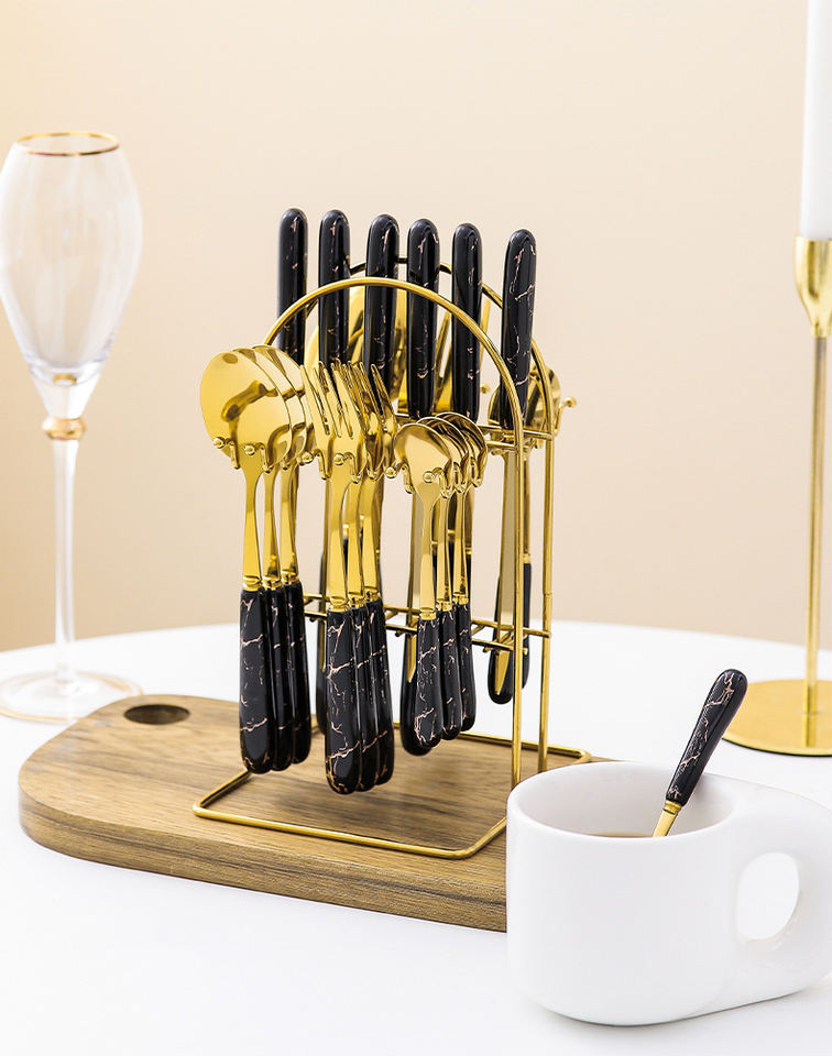 ชุดช้อนส้อมสแตนเลส LT162 สีดำ ขาว เขียว พร้อมด้ามจับเซรามิก 24 ชิ้น พร้อมที่วางช้อนส้อม มีดสเต็ก ส้อม ช้อน