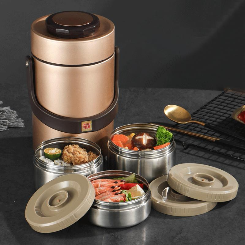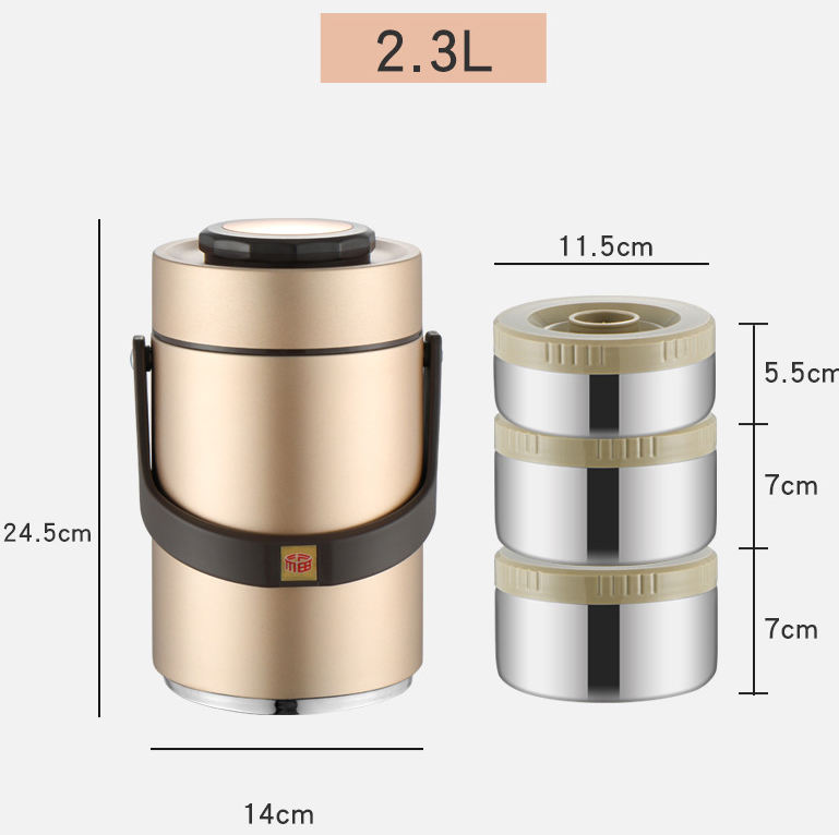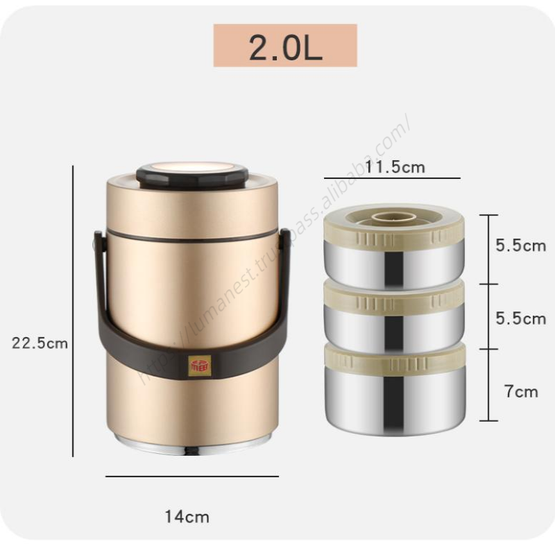กระติกน้ำสุญญากาศสแตนเลส LXM138 แบบสามชั้น เก็บความร้อน-เย็น ทำความสะอาดง่าย กล่องข้าวแบบพกพาสำหรับนักเรียน มีช่องแบ่งอาหาร
