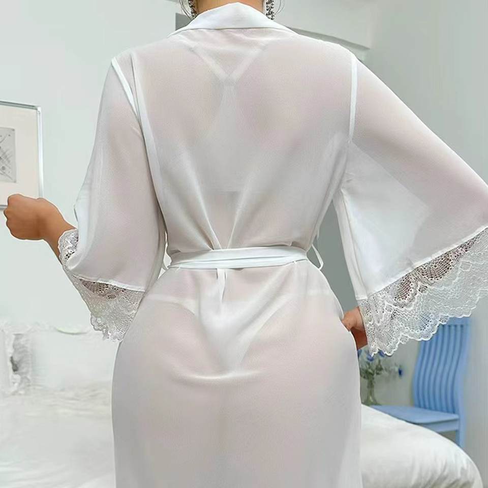 ชุดนอนยาวผ้าชีฟองโปร่งแสงเซ็กซี่ชุดนอนลูกไม้