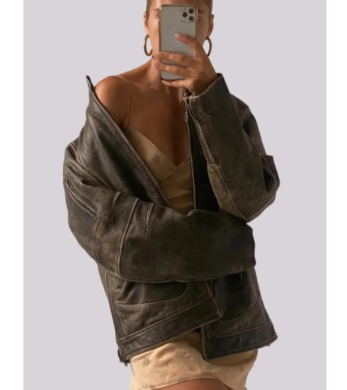 ชื่อผลิตภัณฑ์:แจ็คเก็ตหนังสำหรับผู้หญิง