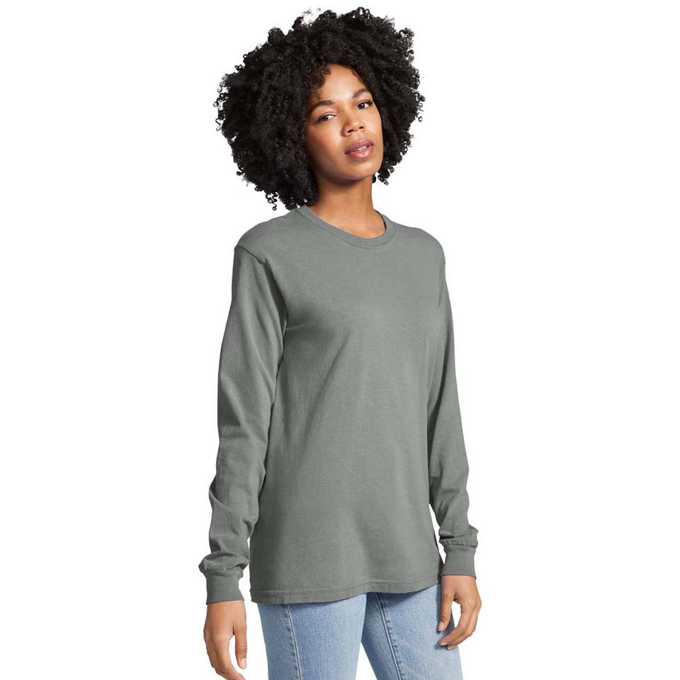 Wholesale Ladies Long Sleeve Embroidered Heavyweight T Shirt