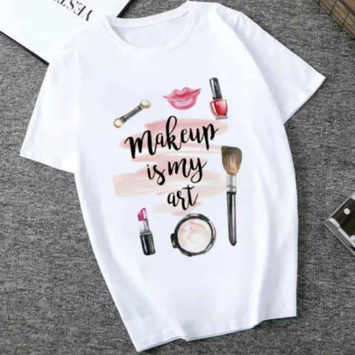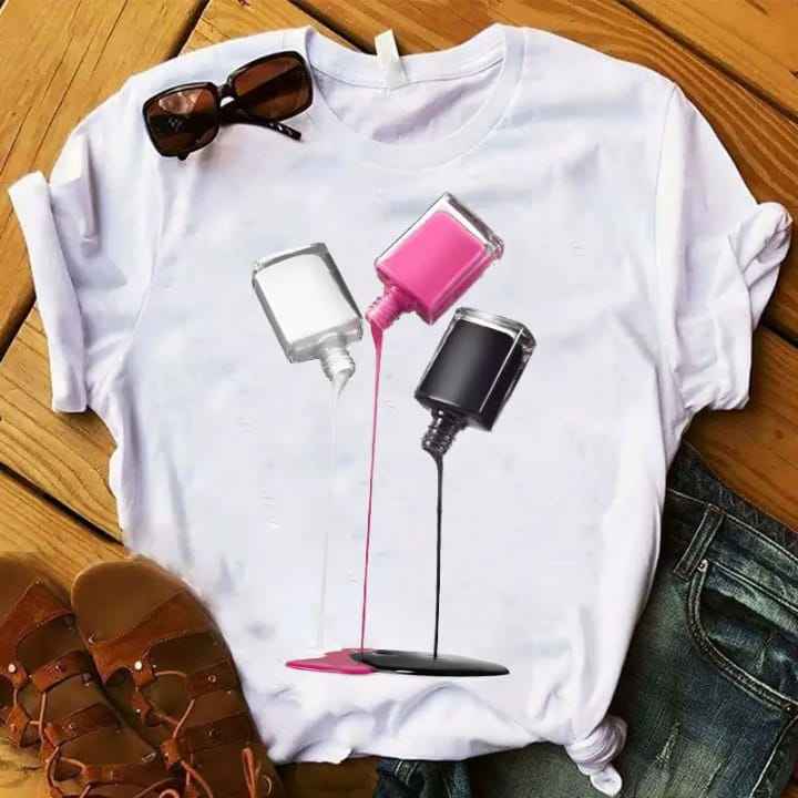 Wholesale Ladies Loose T-Shirt Casual Short Sleeves Nail Polish Print Soft Generous Flannel Material Features Appliques