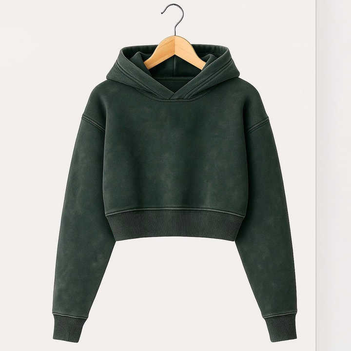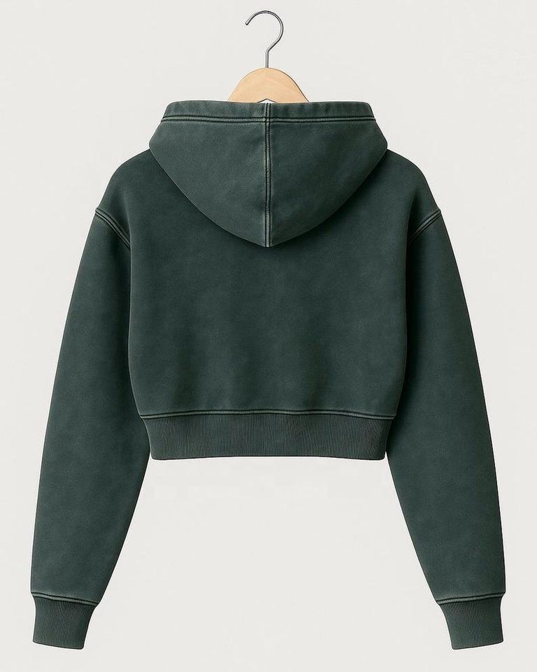Wholesale Ladies Pullover Cotton Latest Design Plain Zipper Crop Top Hoodie Women