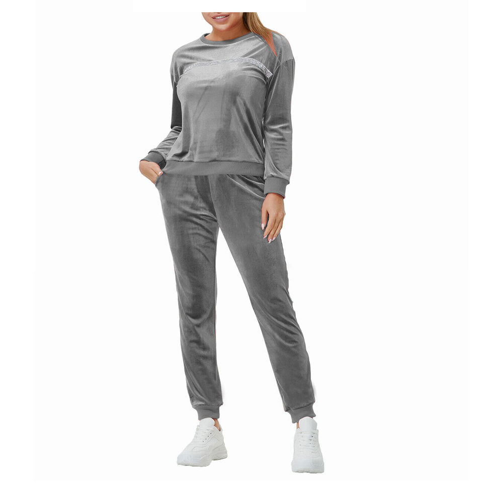 ชุดวอร์ม2ชิ้นสำหรับฤดูหนาวคอลเลกชั่งกำมะหยี่เนื้อนุ่มระบายอากาศ