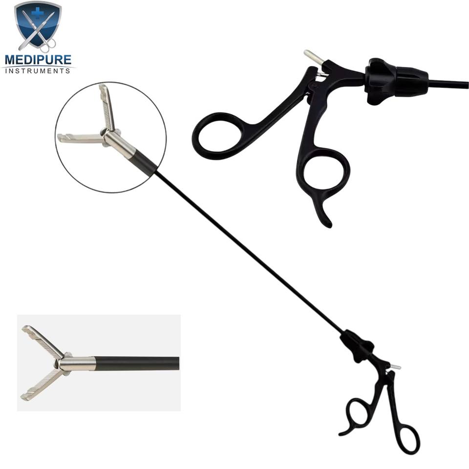 คีมจับเนื้อเยื่อผ่าตัดแบบส่องกล้องพร้อมถังเก็บของเสีย ขนาด 5 มม. x 31 ซม. ผลิตจากสแตนเลส เครื่องมือผ่าตัด MEDIPURE INSTRUMENTS