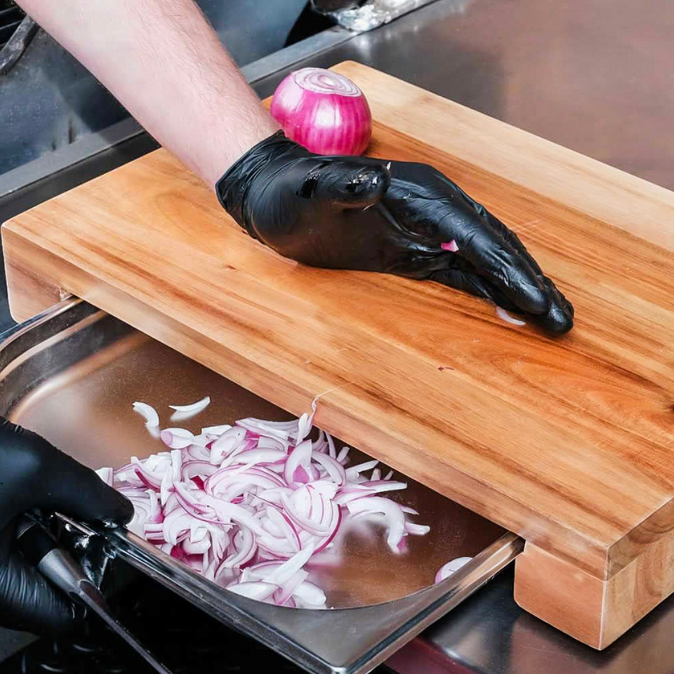 ชุดเขียงไม้อะคาเซียและไม้ไผ่ขนาดใหญ่ถาดว่างและปรับแต่งได้สำหรับใช้ในครัว