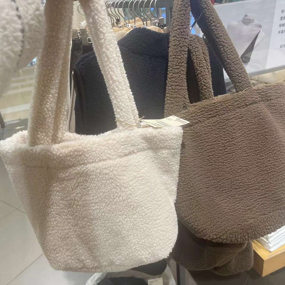 กระเป๋าช้อปปิ้งขนปุยสีน้ำตาลสำหรับผู้หญิง ดีไซน์เรียบง่าย แฟชั่น ขนาดใหญ่ ขายส่ง