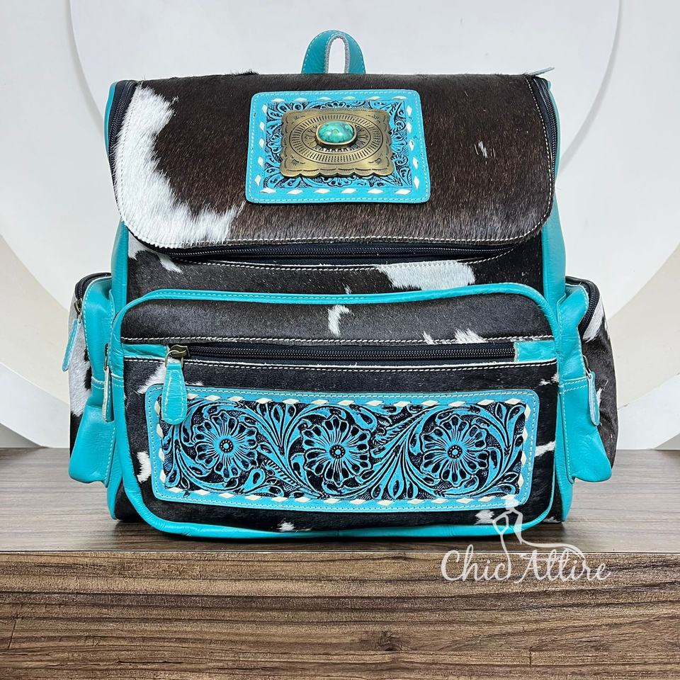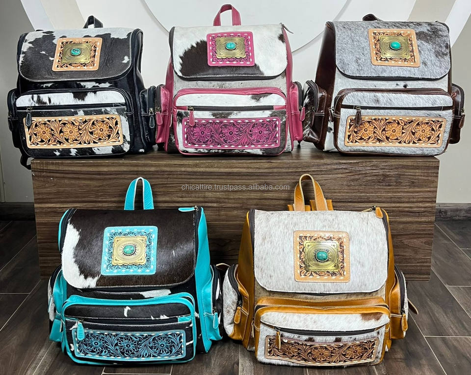 ผมบนกระเป๋าเป้สะพายหลังผ้าอ้อมหนังวัว
