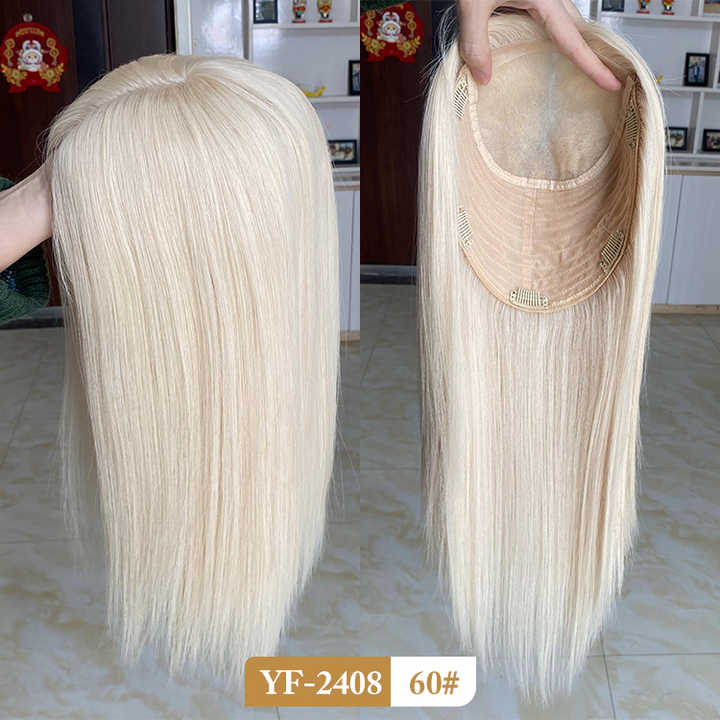 วิกผมคนยิวท็อปเปอร์8.5X9นิ้วสำหรับผู้หญิงผมปลอมแบบคนยุโรปสีบลอนด์แพลตตินัมขนาดใหญ่