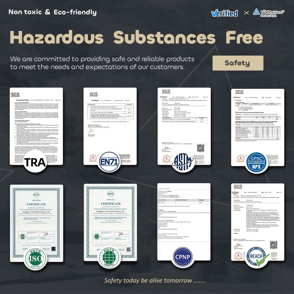 ISO9001/ GMPC/ CPNP/ ASTM/ CPSIA/ EN71/ REACH/ CE/ TRA/ RoHS