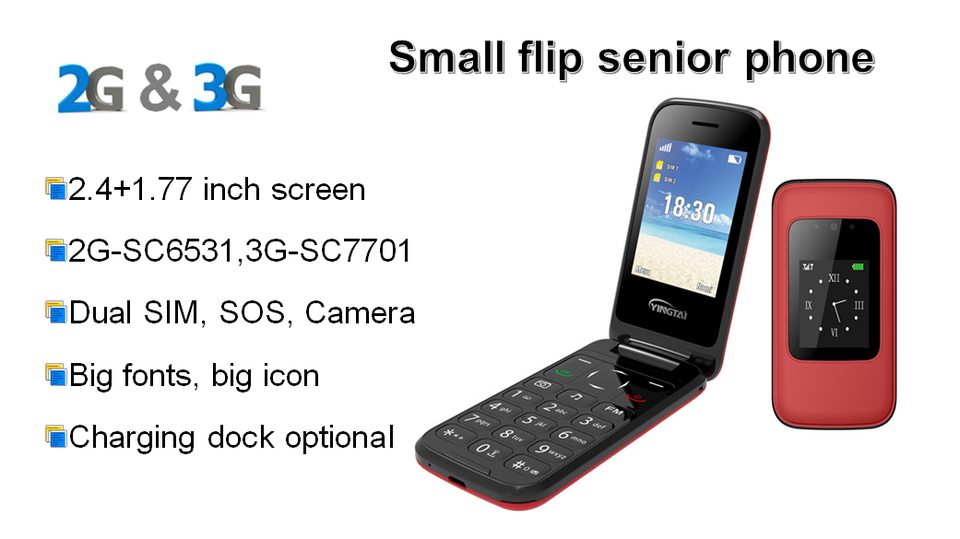 โทรศัพท์มือถือปุ่มกด4G แบบพับได้,โทรศัพท์มือถือผู้สูงอายุพร้อมจอแสดงผลคู่ฝาพับขนาดใหญ่