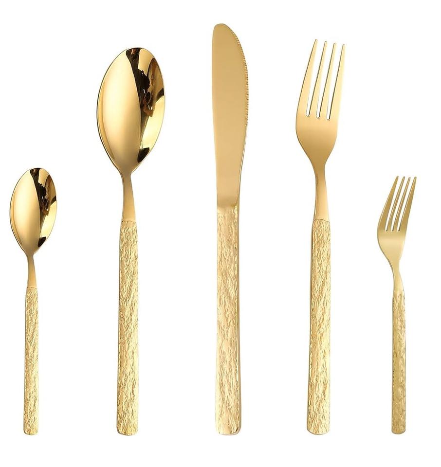 ชุดมีดทองเหลืองดีไซน์ใหม่ล่าสุดชุดเครื่องใช้บนโต๊ะอาหารสีทองคุณภาพดีเยี่ยมสำหรับงานแต่งงานและงานเลี้ยง