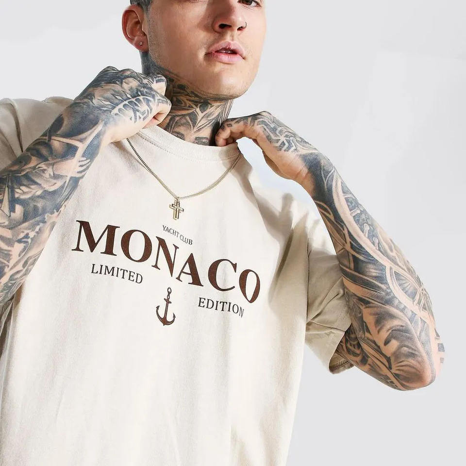 เสื้อยืดฮิปฮอปสำหรับผู้ชายเสื้อยืดพิมพ์ลายสไตล์โมนาโกโอเวอร์ไซส์ผ้าฝ้ายดีไซน์ล่าสุด