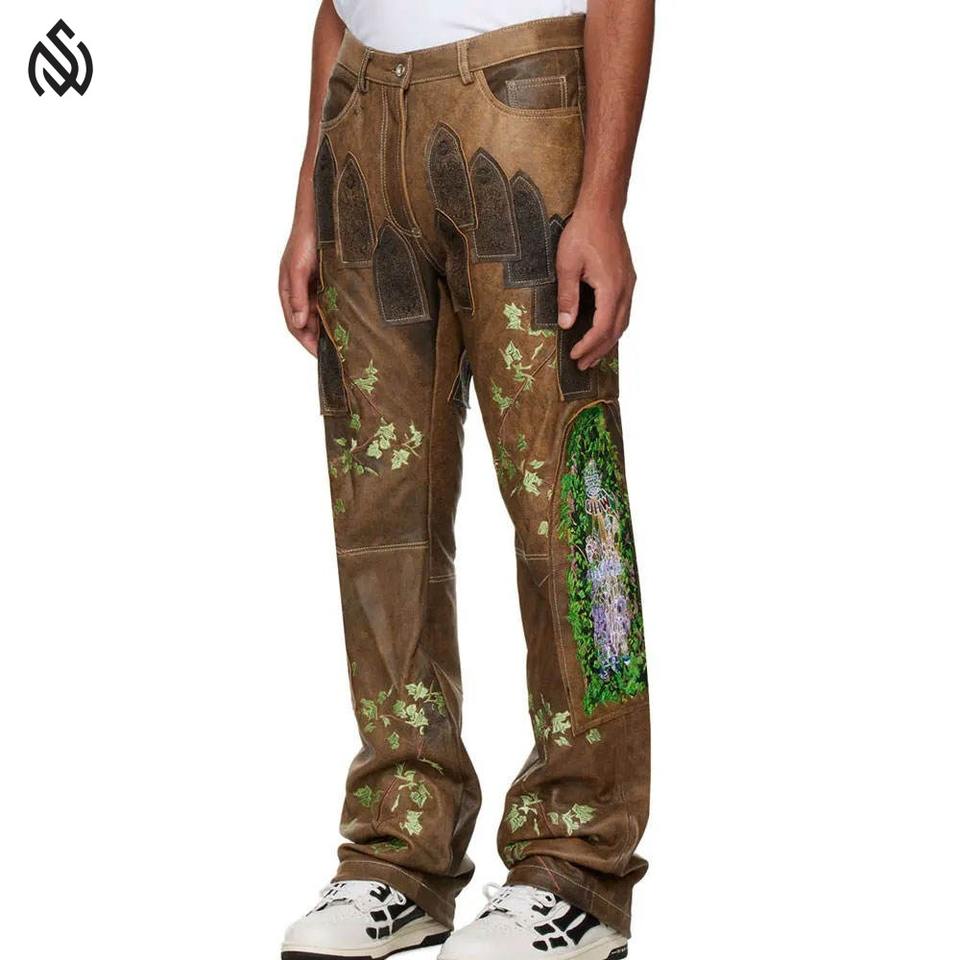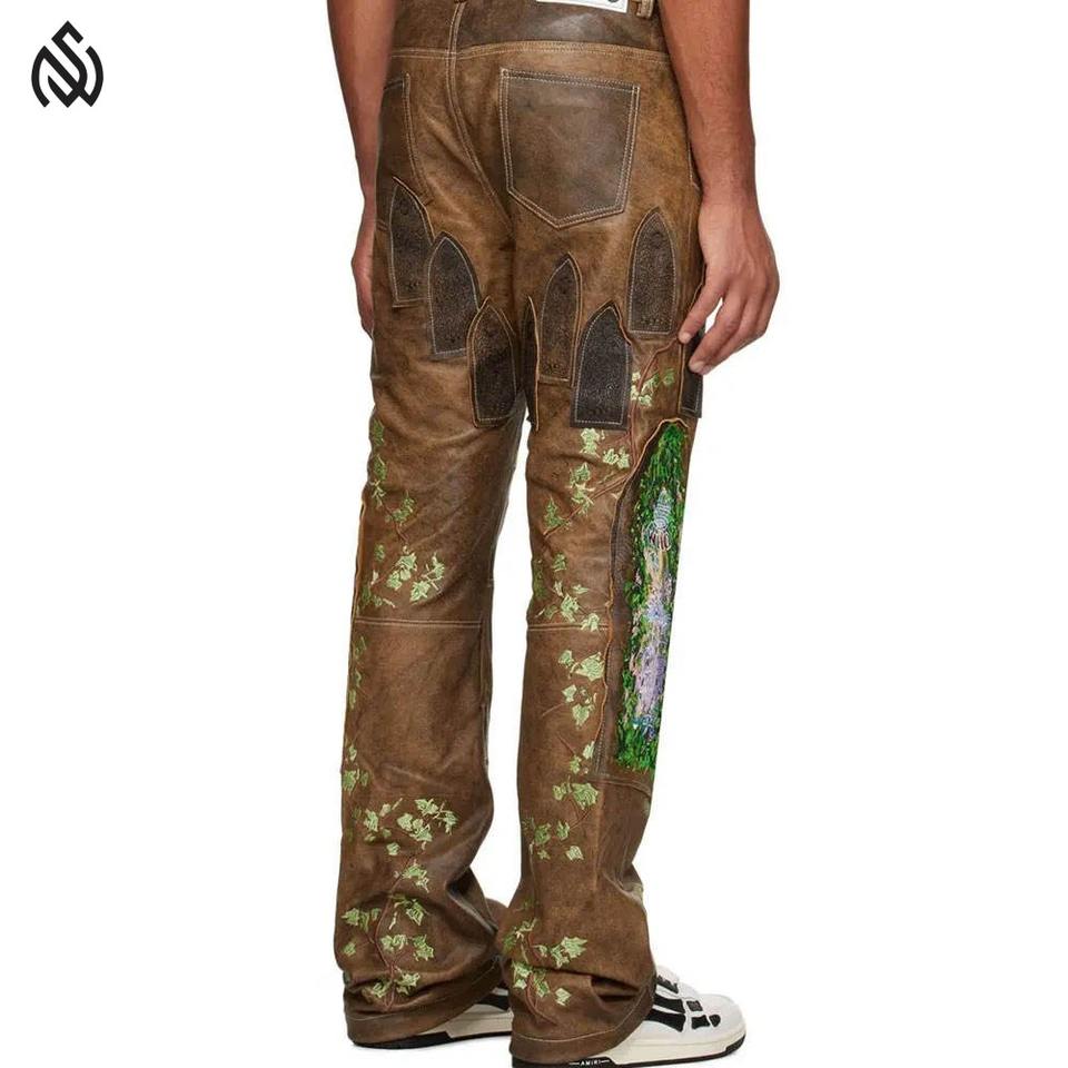 กางเกงหนังผู้ชายกางเกงหนังฟอกทนทานดีไซน์ล่าสุด