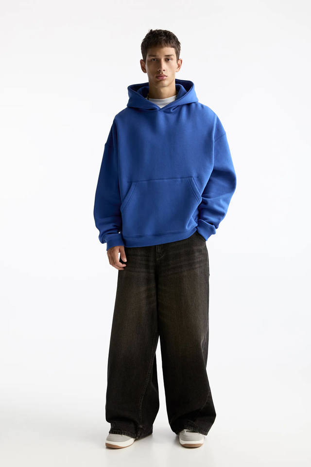 เสื้อฮู้ดแบบสวมหัวสำหรับผู้ชายเสื้อมีฮู้ดแบบสวมหัวผ้าคอตตอนผสมสีฟ้าดีไซน์ล่าสุด